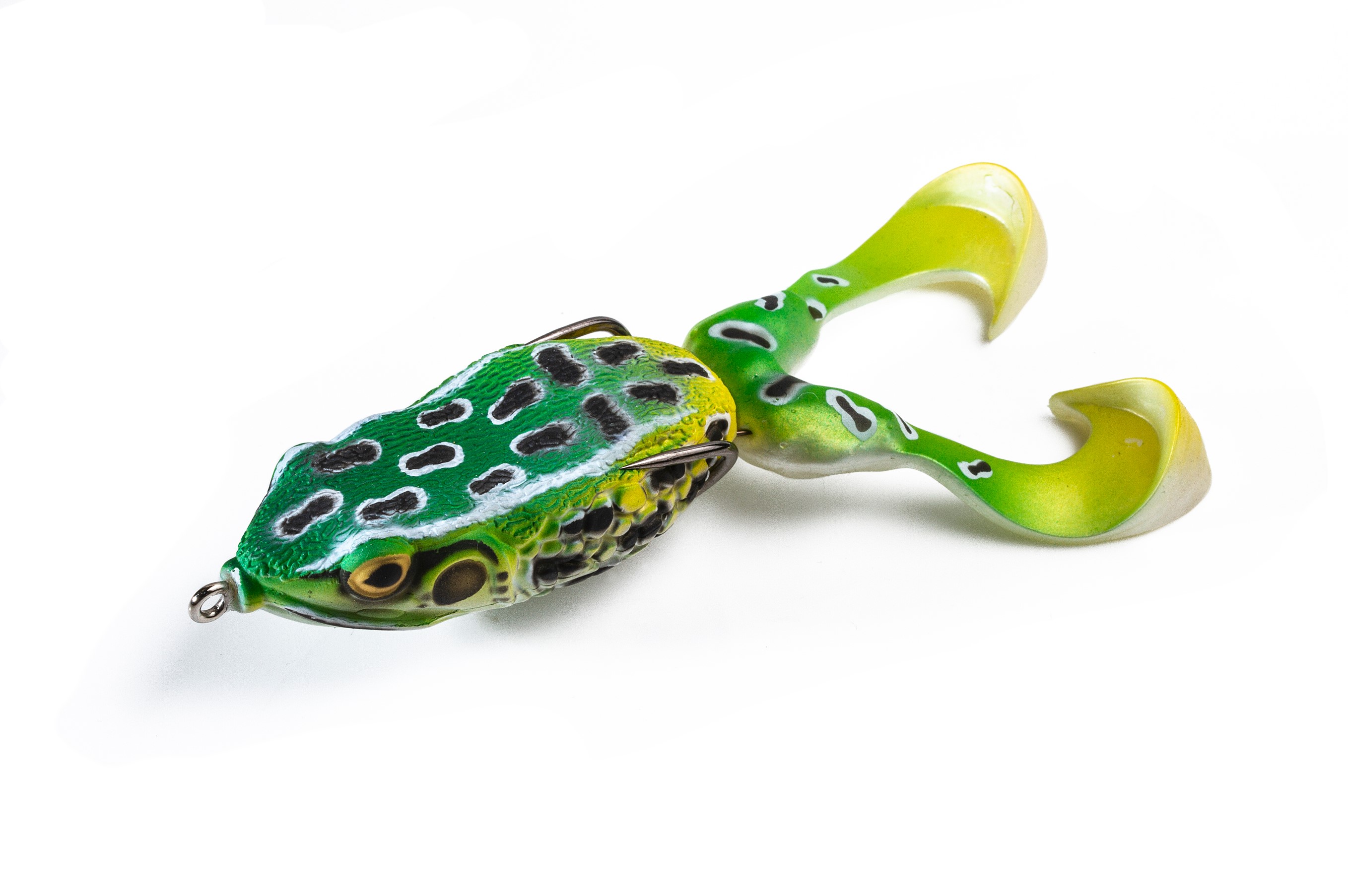 Le appendici rivolte verso l’interno hanno la particolarità di muoversi durante le fasi di recupero come un vero propeller. Si presta a recuperi sia lenti che veloci sopra gli erbai o a jerkate secche. E’ armata con un doppio e robusto amo OMTD Custom. La Supernato Frog R è lead free perché il suo peso interno è realizzato in bismuto, nel rispetto dell’ambiente.