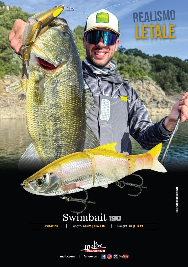 La Swimbait 190F è un’esca snodata in tre sezioni dal nuoto fluido e naturale, in grado di simulare perfettamente i movimenti di un pesce.